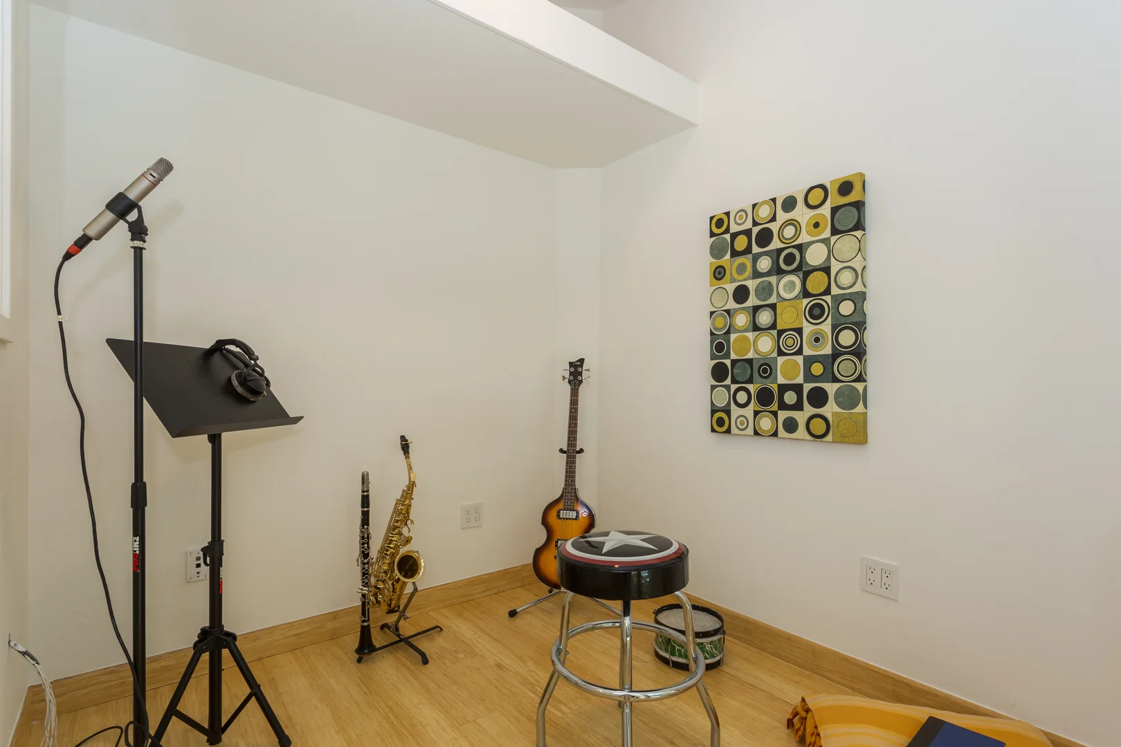 JAZZY: The stylish studio in the back has a fantastic, contemporary design, worthy of a Dwell Magazine publication. It was custom designed and built by noted local architect and builder Ron Bogley for the current owner who is working in the movie industry as a sound engineer. The walls of the structure are extra thick and an integrated recording room will speak to musicians and other recording artists of any kind. For everybody else who would rather use the space differently: the 2 glass sliding doors can be taken out and the space repurposed. The 1/2 bath has a drain in the floor and plumbing in the wall, potentially to ad a shower!
